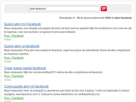 Para buscar "Cómo abrir tu cuenta en Facebook", bastará escribir un par de palabras. En este caso hemos puesto "abrir" y "Facebook".