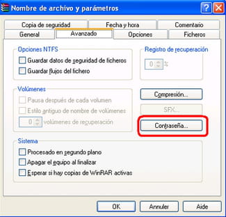 Podemos también proteger este archivo por una contraseña. Haz clic en el botón derecho sobre el archivo escogido, elige Pestaña "Avanzado", luego "Establecer contraseña". Ingresa una contraseña y confirmarlo.