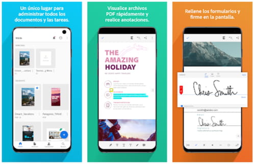 Tiene todas las funciones de Adobe Reader pero desde la comodidad de tu móvil. Puedes ver, anotar, compartir, trabajar en conjunto con otros, rellenar y firmar formularios, así como almacenar e imprimir archivos.