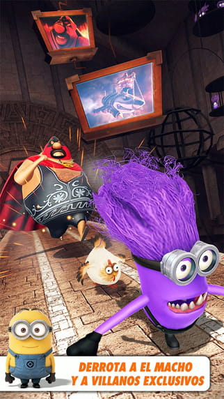 Gru, Mi Villano Favorito: Minion Rush es un adictivo videojuego de estilo "endless runner" desarrollado por Gameloft, compañía lider en la industria de los videojuegos para dispositivos móviles. Está basado en la serie de películas animadas "Gru, Mi Villano Favorito", por lo que durante el transcurso del juego se entremezclan los escenarios y sonidos de las películas con las aventuras de los principales protagonistas, entre ellos los encantadores Minions y el malvado Vector. En Gru, Mi Villano Favorito: Minion Rush deberás tomar el papel de un Minion y correr sin detenerte, saltar o deslizarte para esquivar los obstáculos y enfrentarte a algunos villanos que no dudarán en destruirte. Durante la carrera deberás recoger fichas con forma de bananas que te ayudarán a comprar trajes, armas y potenciadores para tu Minion. Algunos poderes, junto a tu habilidad y rapidez de reflejos, serán la clave para superar las misiones y avanzar hacia el siguiente nivel. Las últimas actualizaciones del juego incluyen minijuegos, nuevos villanos para enfrentar y permiten participar en carreras
