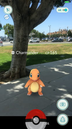 - La realidad aumentada: luego de encontrarlos, podremos visualizar a los Pokémon superpuestos sobre la escena real y capturarlos haciendo uso de las pokébolas.