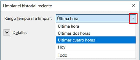 - Selecciona desde cuándo quieres que se borre tu historial de navegación en la ventana emergente y da clic en Aceptar.