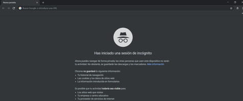 - Se abrirá una ventana de navegación negra con un mensaje que indica que has iniciado una sesión de incógnito: