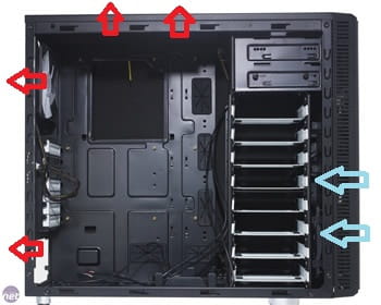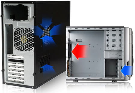 Sin embargo, una carcasa equipada con una fuente de alimentación en la parte inferior produce una mejor ventilación ya que el aire caliente tiende a subir y salir al exterior por los orificios de ventilación: