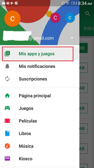 Google Play Store, luego ingresa al menú