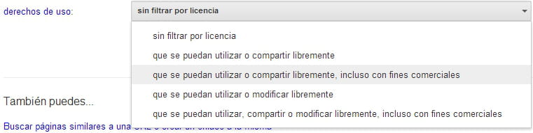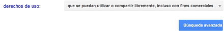 - En la parte inferior de la página, en "derechos de uso", selecciona el filtro "que se puedan utilizar o compartir libremente, incluso con fines comerciales".