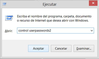 - Escribe control userpasswords2 y haz clic en Aceptar: