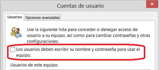 - Desmarca la opción Los usuarios deben escribir su nombre y contraseña para usar el equipo