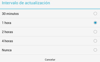 Intervalo de actualización y selecciona la frecuencia con la que deseas que la aplicación realice las actualizaciones: