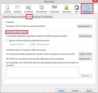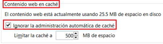 Contenido web en caché, marca la opción