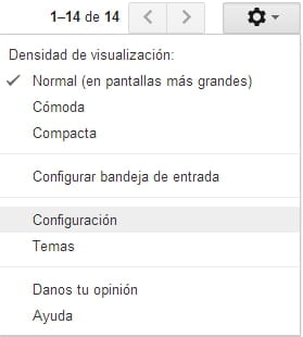 Entra a tu cuenta Gmail, haz clic en el botón en forma de rueda dentada y selecciona