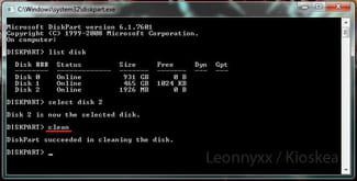 clean. En caso de que la unidad tenga más de una partición escribe