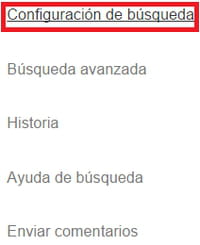- Abre tu navegador web, entra a Google e inicia sesión con tu cuenta de Gmail. En la parte inferior de la página, haz clic en Configuración y selecciona Configuración de búsqueda: