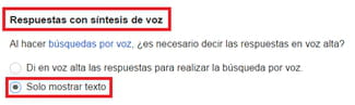 - Dirígete a la sección Respuestas habladas y marca la opción Solo mostrar texto: