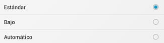 Las opciones disponibles son: estándar, bajo y automático.