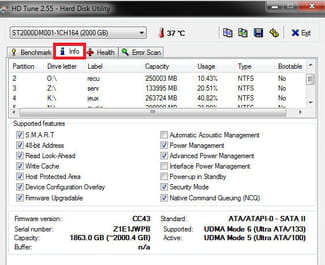 - Haz clic en Info para acceder a las características y detalles de los discos duros seleccionados: