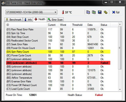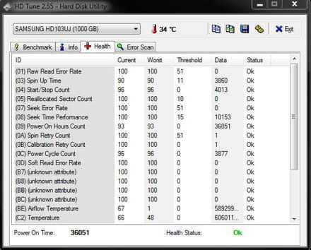 - Haz clic en Health para obtener información sobre el estado del disco duro seleccionado