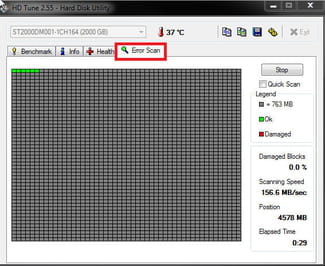 - Haz clic en Error Scan y luego en Start para iniciar el análisis: