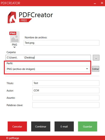 - Enseguida, pulsa sobre la flecha del menú desplegable en la parte derecha y selecciona el formato de destino, es decir, PDF (Portable Document Format) (.pdf).