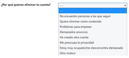 ¿Por qué quieres eliminar tu cuenta? y elige un motivo: