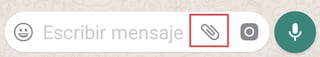 Para compartir una foto o vídeo de la galería de tu teléfono, pulsa el icono en forma de clip, localizado en la parte inferior (al lado de la casilla para escribir mensajes):