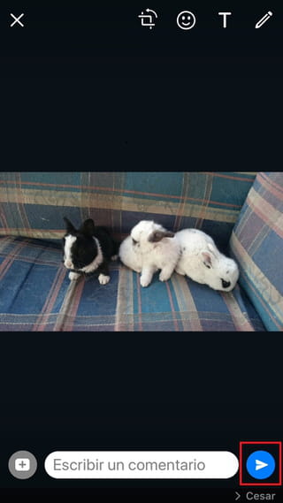 Si deseas grabar un vídeo, mantén presionado el botón circular. La aplicación te da la oportunidad de revisar y modificar el contenido que vas a compartir. Si estás de acuerdo toca el icono de Enviar.