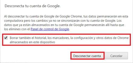 Borrar también el historial, los marcadores, la configuración y otros datos de Chrome almacenados en este dispositivo: