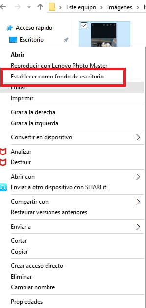Establecer como imagen del escritorio: