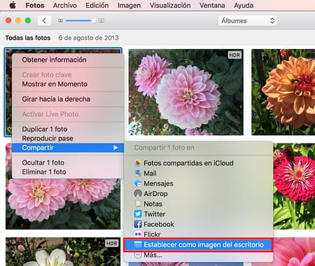 Fotos y selecciona la foto que deseas usar como fondo. Haz clic derecho sobre ella, luego selecciona