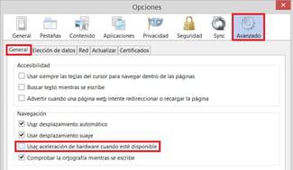 drivers, lo que puede provocar lentitud al cargar páginas, al iniciar el navegador y problemas de visualización. Si Firefox presenta alguno de estos problemas, puedes desactivar esta función, que viene activada por defecto, y ver si se soluciona el problema.