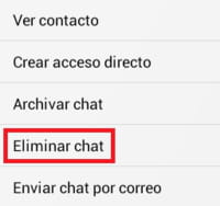 CHATS. Para eliminar este historial, pulsa por un par de segundos el nombre del contacto y selecciona