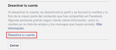 Cómo desactivar tu cuenta de Facebook
