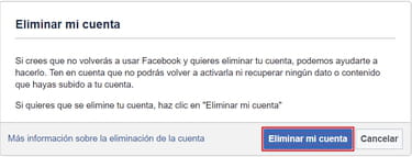 Ten en cuenta que al eliminar tu cuenta, toda tu información desaparecerá de Facebook.