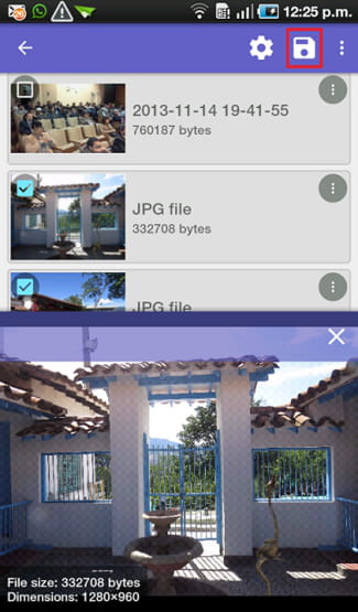 Guardar los archivos seleccionados en el dispositivo). Elige la carpeta donde guardarás los archivos y pulsa el botón