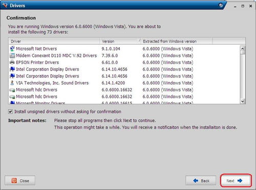 drivers. Luego, podrás restaurarlos con el mismo programa.