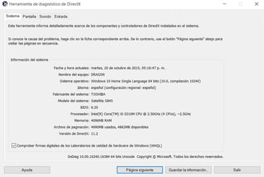 Cómo saber los datos de tu tarjeta madre a través de la herramienta de diagnóstico de DirectX