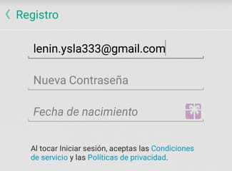 Ingresa tu dirección de correo electrónico, una contraseña y tu fecha de cumpleaños (es necesario que tengas al menos 13 años de edad para crear una cuenta):