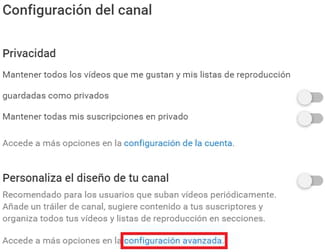 Es conveniente que añadas palabras clave para ayudar a las personas a encontrar tu canal. Para hacerlo, ingresa a tu canal, haz clic en el icono en forma de rueda dentada y da clic en el enlace