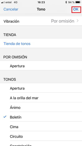Tono. A continuación, elige entre los tonos predeterminados o selecciona