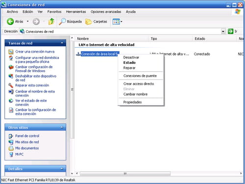 - Con el botón derecho del ratón, haz clic en la conexión de red luego en Propiedades.