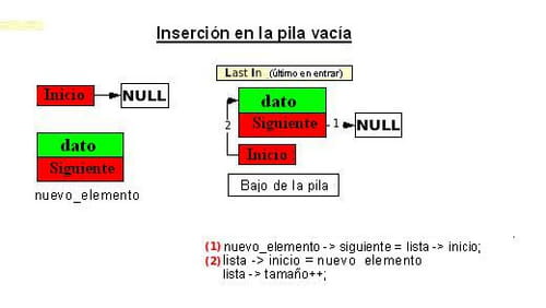 1 después de la inserción. La característica de la pila no es muy apreciada con un solo elemento, ya que es el único a recuperar.