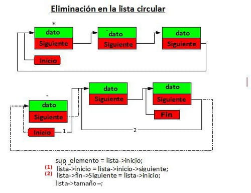 En las listas circulares, nunca se llega a una posición en la que ya no sea posible desplazarse. Cuando se llegue al último elemento, el desplazamiento volverá a comenzar desde el primer elemento.