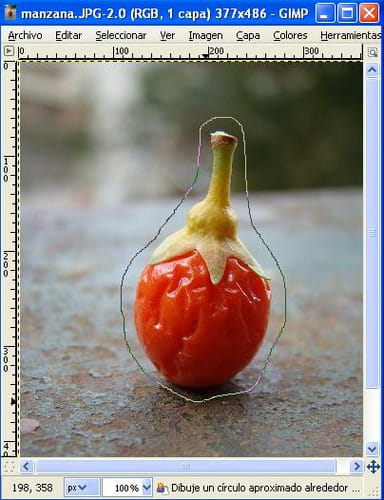 Abre la imagen y dibuja un circulo aproximado alrededor del objeto que deseas extraer.