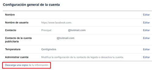 bajar tus datos de Facebook desde tu computadora o teléfono móvil.