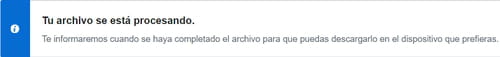 Facebook empezará a crear tu archivo y cuando lo tenga listo te enviará un mensaje a tu dirección de correo electrónico asociada a tu cuenta: