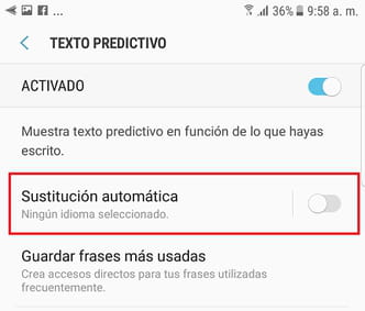 Sustitución automática, desliza el interruptor hacia la izquierda para desactivar esta función:
