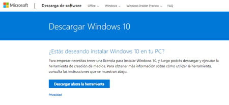 1) Accede al portal de descargas de Microsoft y haz clic en Actualizar ahora.