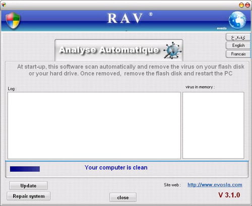 - Descarga RavAntivirus: http://www.evosla.com/evosla_soft/rav-antispy.html (para poner el idioma en español, selecciona Spanish en la sección Translate)