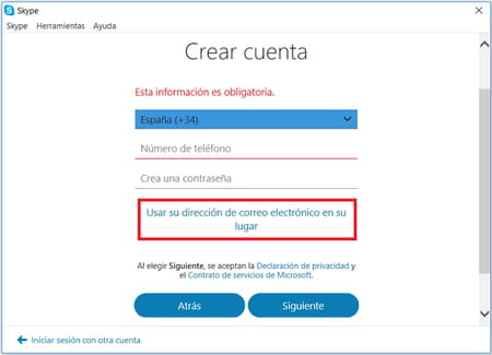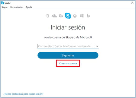 cómo crear una cuenta en Skype.