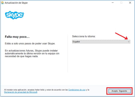 Una vez terminada la descarga de Skype, haz doble clic en su archivo de instalación y sigue las instrucciones que aparecen en pantalla:
